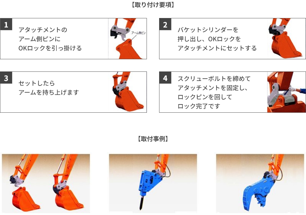 ショベルにアタッチメントを