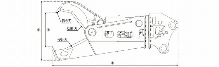 | 型 式 | 適応クラス(m3) | 重量(kg) | 全長(mm) | 全高(mm) | 最大開口幅(mm) | 先端砕力(KN) | 使用圧力(Mpa) |