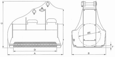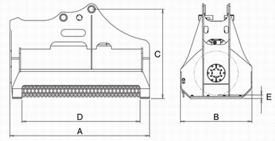 型 式 適応クラス(m3) 重量(kg) A:全長(㎜) B:全幅(mm) C:全高(mm) D:刈幅(㎜) E:刈高(㎜)