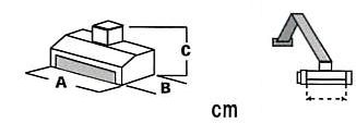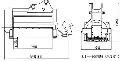 型 式 適応クラス(m3) 重量(kg) A:全長(㎜) B:全幅(mm) C:全高(mm) D:刈幅(㎜)