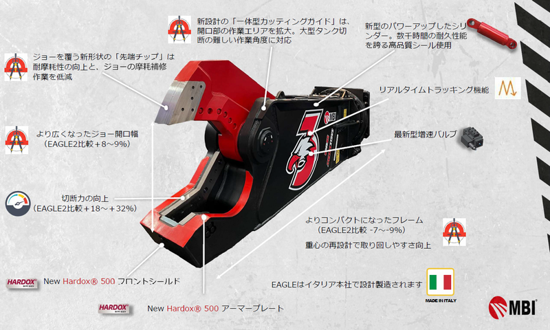 - プラントの解体・タンク解体・船舶解体など鉄の切断に特化したアタッチメント。